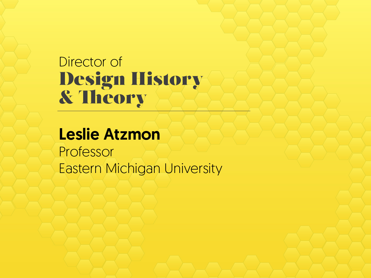 Leslie Atzmon is a designer and design historian who teaches at Eastern Michigan University. She co-edited the collections Encountering Things: Design and Theories of Things (Bloomsbury 2017) and The Graphic Design Reader (Bloomsbury 2019). Atzmon and colleague Ryan Molloy were awarded a National Endowment for the Arts (NEA) ArtWorks grant from 2012-2014 to support experimental book design workshops and the creation and production of The Open Book Project book. Atzmon has a new collection, entitled Visual Ecologies of Placemaking, edited with Pamela Stewart (forthcoming Bloomsbury 2026).